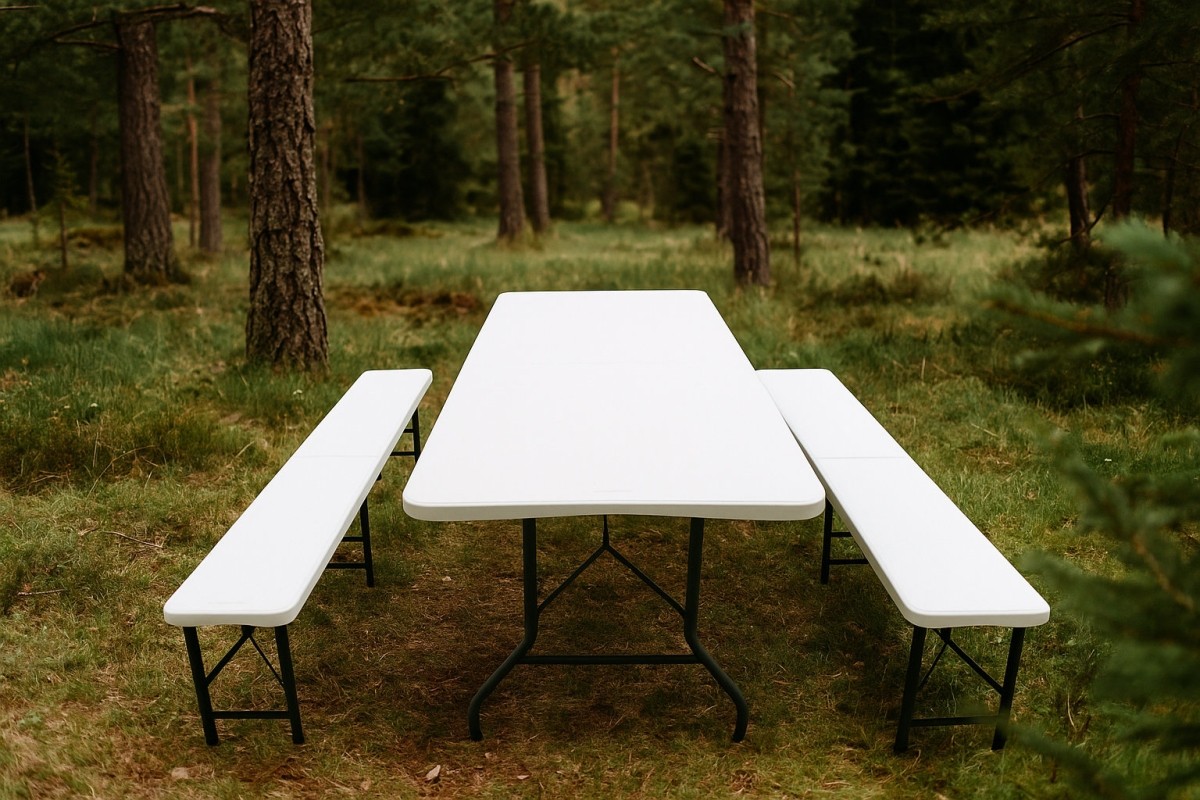 Záhradné či kempingové plastové sedenie – pevné, odolné a okamžite použiteľné. Skladacia lavica a stôl z odolného plastu vám poslúžia kdekoľvek. Tento praktický pivný set obsahuje dve lavice a jeden stôl, vďaka čomu máte okamžite pripravené kompletné sedenie pre väčší počet ľudí.