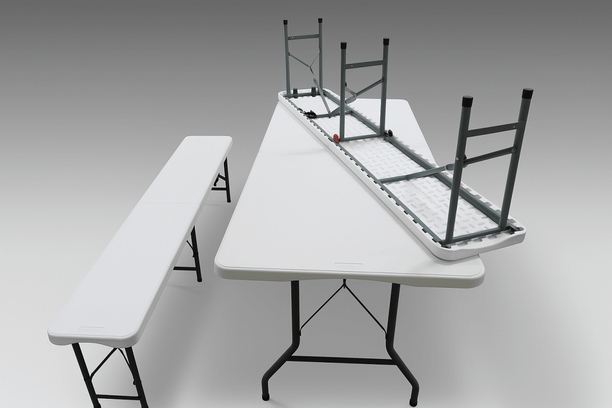 Plastová skladacia lavica aj plastový skladací stôl majú jednoduchý systém skladania. Po zložení zaberú minimum miesta, čo oceníte pri preprave autom alebo uskladnení.