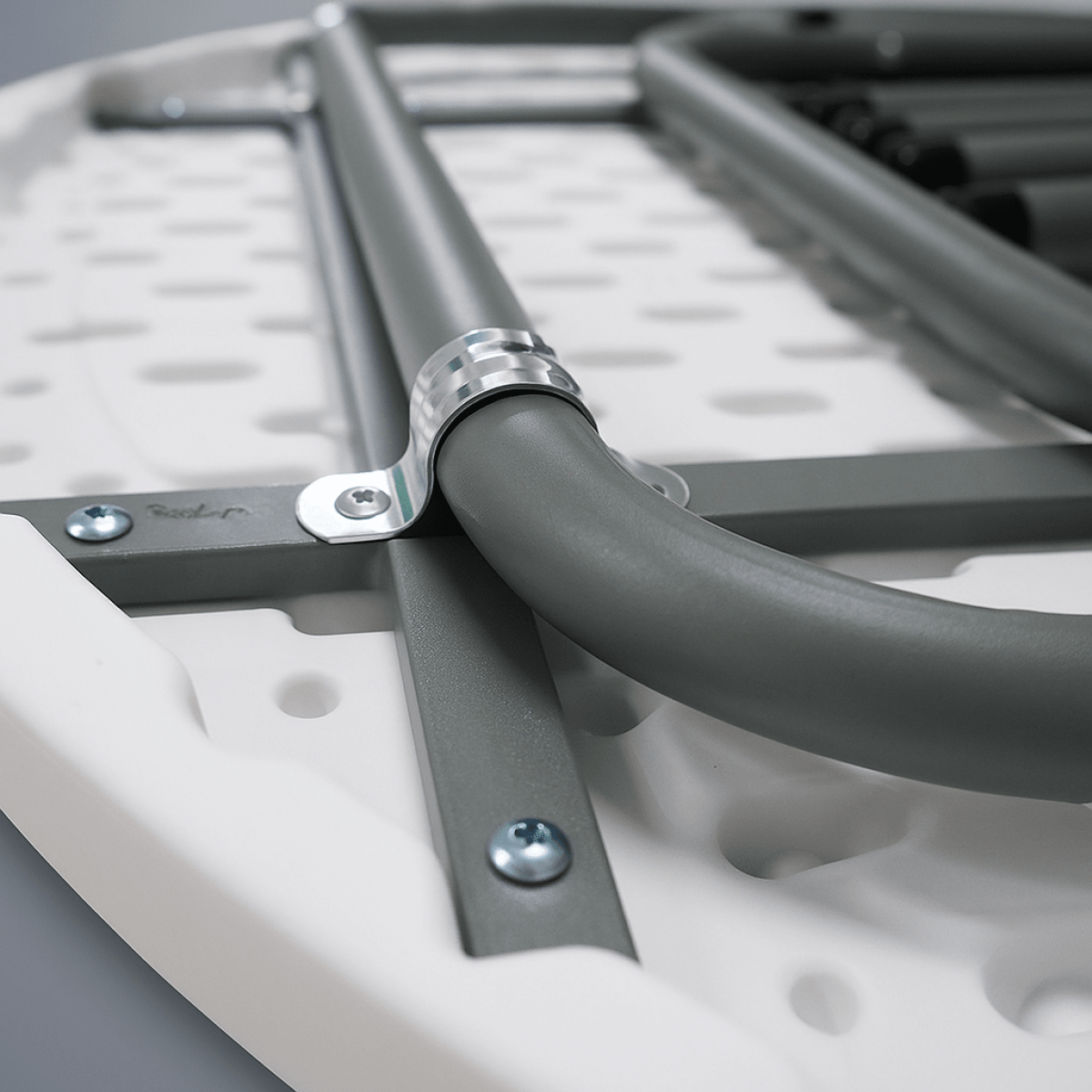 - Skvelá skladnosť – vďaka skladacím nôžkám a zloženému stavu (len 99 cm) možno stôl previezť osobným autom, ušetriť miesto pri uskladnení.